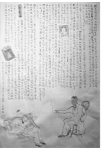 另一幅是小说中两个人物赵尚同与倪吾诚的对白。与其说是对白,不如说是倪吾诚所遭受的痛斥。两个人的冲突从某种角度来说,也代表了“五四”以来,中国知识分子在封建传统文化与西方现代文明之间的身份转换或选择取舍中产生的痛苦和迷茫,同时,深刻地批判了在这个群体中存在的软弱虚妄,夸夸其谈,缺乏责任与使命的利己主义的实质。(小说中的人物赵尚同与倪吾诚的争论。背景文字选自《活动变人形》。文/图:兴安)