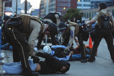 这个偶发事件如一点星星之火,落到了一堆干柴之上。美国普通民众,尤其底层民众压抑已久、累积已久的不忿、不满和不服,冲着“种族歧视”和“执法不公”熊熊燃烧,迅速蔓延全美各地。而我在美国工作、生活近三十年,对“种族歧视”或“性别歧视”一度是缺乏切身体验的。在很长一段时间里,我对警察有相当程度的好感。我见过他们从大树上将邻居的猫抱下来,见过他们帮助抢救突然晕厥倒地的路人,我自己某天被医生送去住院,也是警察到家里去照料我那个当时只有八个月大的幼儿……。因此,我一直以为他们都是“正义”和“公正”的化身,是由纳税人供养而“全心全意为人民服务”的一个群体。