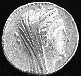 然而,专家考证后得出结论:金币头像并非克莉奥帕特拉一世,而是托勒密五世的曾祖母阿西诺亚二世。托勒密五世的姓名意为“神灵显赫”,他父亲托勒密四世死后,两个大臣谋杀了其母阿西诺亚三世,当时托勒密五世才5岁。此后埃及为各国所欺,叙利亚国王安条克三世与马其顿国王菲利普斯五世密谋瓜分托勒密领地,安条克三世占据了巴勒斯坦。公元前193年,托勒密王朝与对手塞琉古王朝艰难达成和约,根据协约,托勒密五世与安条克三世的女儿克莉奥帕特拉一世于公元前192年成了婚。但托勒密五世后来却支持罗马而反对岳父。他30岁就去世了,一些历史学家怀疑他可能遭下毒。这就可以理解,为何他铸造金币不用外族妻子的头像,也不用母亲的头像,而用曾祖母的头像。除了怀念曾祖母的慈爱,还因为她的美丽和能干。她的名字Philadelphus(山梅花),意为“兄弟之爱”。因为,她的第二任丈夫是她的弟弟。在古埃及王朝,兄弟姐妹通婚是寻常事。