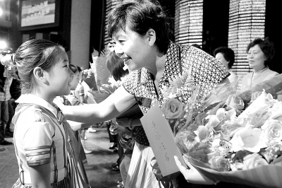 9月7日,北京市举行新东城区庆祝第26个教师节大会,全面展示新区融合后教师风采和学生素质教育成果。新东城区有北京市唯一的“全国教师教育示范基地”,优秀中青年校长和骨干教师快速成长。图为学生向老师敬赠鲜花。