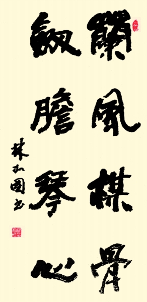 林加国,字谷雨。1939年2月生于福建莆田,原海军某部政委,中国书画院院士、世界书画家协会总会理事。他学书广涉历代诸家墨迹,书风雄浑苍劲,艺路孜孜以求,形成儒雅洒脱的艺术风格,尤擅行草、隶书。作品多次参加国内外展览并获奖,出版有《林加国书法艺术》、《求索》等。