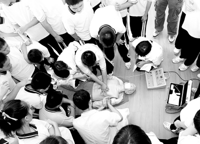 “做15次胸外心脏按压,再做2次人工呼吸,上述动作要在1分钟内重复4次,这个急救措施在医护人员赶到前,是十分重要的。”日前,在济南市高新区实验学校,山东边防总队医院的医生们正在为这里的师生们现场传授紧急情况下的自救知识。