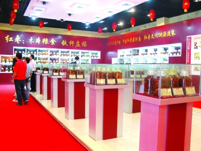 | 2010年中华枣乡风情游暨第八届好想你红枣文化节近日在素有“红枣之乡”的河南新郑市举办。新郑种植红枣已有上千年历史,本届红枣文化节以“生态、环保、低碳、营养、健康”为主题。主办者希望通过这次活动,使人们能更好地感受红枣文化和枣乡民俗,关注生态环境保护。 好想你枣业股份有限公司还建造了世界上第一座中华枣文化博览中心,收集了全国各地上百种红枣的珍贵标本,更有与生活相关的历代枣木制生活用品展示。图为中心展示厅一角。 |