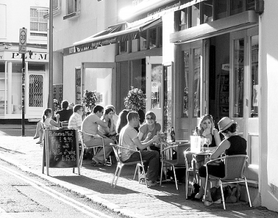 图为欧洲城市随处可见的街头咖啡馆。