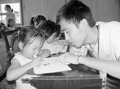 | 暑假是大学生走入社会大课堂的宝贵时间,他们借助这个机会增长才干、认识社会、服务大众。图为四川农业大学学生在地震灾区志愿服务,指导小学生学习。 |