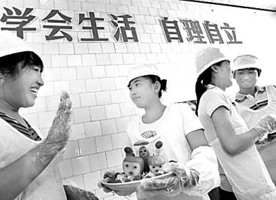 | 河北省迁安市特殊教育学校为了最大限度地开发特殊学生的特长,专门根据每个学生的特点及兴趣爱好,成立了编织、烹饪、电脑、舞蹈、书法绘画、体育等兴趣小组,每个组配备专职教师。这是烹饪班学生在老师指导下制做水果拼盘。 本报记者 刘新武 摄影报道 |