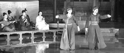 下图:一场晚来的秋雨,伴随着9月16日晚在北京太庙演出的南音乐舞《武丁与妇好》,演绎了一支令海峡两岸同胞心弦共鸣的雨中曲。这场典雅动人的古典乐舞,是由甲骨文故乡的河南安阳市殷都区人民政府制作、台湾著名艺术团体汉唐乐府为当日揭幕的首届两岸汉字艺术节举行的汉字艺术专场演出。演出在绵绵细雨中开始,让冒雨观看的两岸嘉宾和北京观众看得如醉如痴,图为演员们在细雨中一丝不苟地演出。
