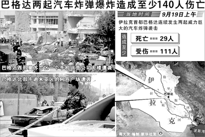 巴格达两起汽车炸弹爆炸造成至少140人伤亡