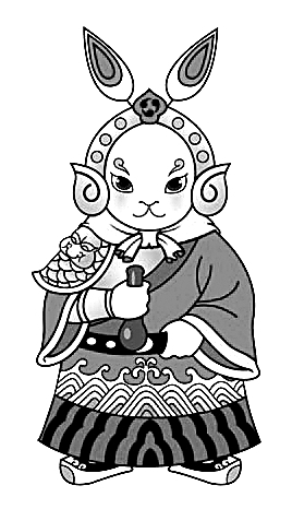 这是一种什么玩艺儿呢?简单地说,是一种泥人玩具,说得更具体一些,就是一种用模子脱出来的、人身兔面的泥俑玩具。脸上红白相间,也十分漂亮。说是“兔脸”,也不完全是兔子的样儿,而是人脸,只是嘴是“兔唇”,画成一个红色的三叉形。另外上面有两根大耳朵,做成一个银枪金甲红袍的坐像。兔儿爷有大有小,最大的三尺多高,小的也有四五寸高。有一种嘴唇做成活络的,空心中有线可拉,拿在手中玩,一拉中间的线,嘴唇就乱动,十分好玩,叫做“刮打嘴兔儿爷”。这个名称,不要说在外地,恐怕在北京,也很少有人知道了吧。做得最讲究的兔儿爷,面部贴泥金,背后插彩绸护旗背,像戏台上的武将一样,颇为威风。