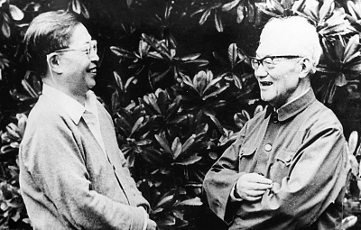 图为1988年,曹禺和巴金在一起。新华社发(资料照片)