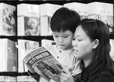 国庆假期临近,北京西单图书大厦各类新书纷纷上架。在众多淘书人中,一位小朋友也捧起了大部头,满脸稚气和认真的表情相映成趣。本报记者 刘新武摄