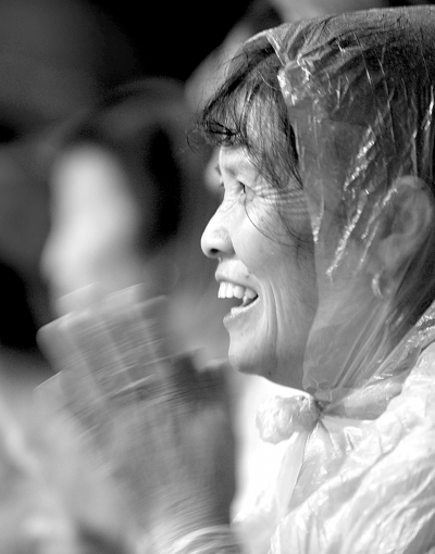 这是九月二十五日晚拍摄的冒雨观看﹃文化夜市﹄的群众今年八月初起重庆市沙坪坝区曾家镇每周举办一场文化夜市借鉴农村赶集的形式开展红歌对唱经典诵读讲革命经典故事箴言诵读跳红歌坝坝舞等多种文化活动形式丰富当地群众的业余生活使当地因征地拆迁不断增加的转非农民改变了过去打牌赌博等不良的文化生活方式 新华社记者 杨磊摄