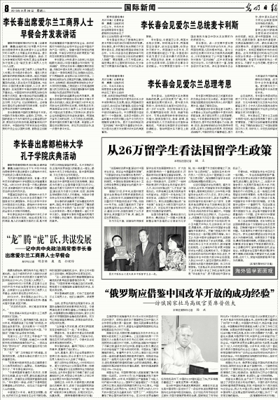 李长春出席爱尔兰工商界人士早餐会并发表讲话