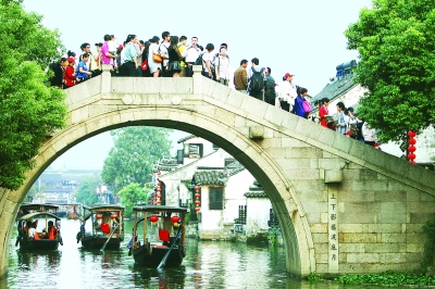 | 10月5日,游人在浙江省嘉善县古镇西塘景区内游览。10月1日至5日,西塘总计接待国内外游客147000多人。 新华社发(胡凌翔摄) |