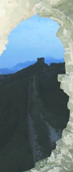 黎明时分,我们爬到了古北口将军楼的长城上。秋风扯衣,举目远眺,雾染群山,月挂天际。正如清代文人洪昇《望古北口》所写:“绝顶此跻攀,苍茫晓日殷。一身飞鸟上,双足乱云间。大漠连沧海,长城补断山。遥看古北口,天险旧秦关。”古北口自古就是内地与松辽平原的自然分界线,是长城诸多关口中的要塞,距离北京100多公里,素有“京师锁钥”之称。这个密云县东北部的边镇,现在走101国道可直驱长城脚下。