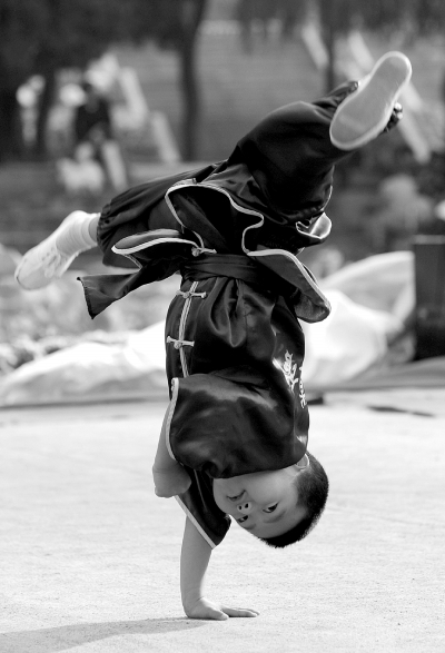 | 10月6日,在辽宁大连市劳动公园荷花池畔,一名小选手在参加少林拳套路比赛。 当日,为期6天的大连市第五届国际武术文化节在大连市劳动公园荷花池畔落下帷幕。本届武术节报名参赛的运动员达到2000余名,参加60多个项目的表演和角逐。 新华社发 |