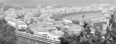 压题照片为10月9日上午8点的北京西便门桥上的车流。本报记者 赵洪波摄