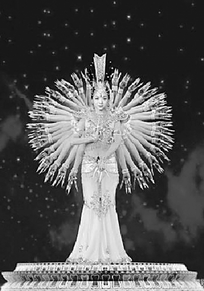 图为中国残疾人艺术团的演员们在表演“千手观音”。