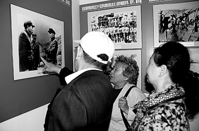 | 由中华人民共和国文化部、朝鲜对外展览总局和朝鲜驻华使馆共同主办的《纪念朝鲜劳动党成立65周年朝鲜图书图片美术展》,10月9日至10月14日在北京国子监博物馆举行,展出美术作品50幅、摄影图片70幅和朝鲜各类出版物500多种,生动展示了朝鲜人民幸福祥和的生活图景。图为观众在欣赏反映中朝友谊的历史图片。 本报记者 谌强摄 |