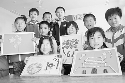 日前,山东省无棣县西小王乡明德小学三年级的同学们在展示他(她)们用五谷杂粮制作的国旗、天安门等贴画,以表达对祖国的祝福。该县中小学广泛开展系列庆祝活动,广大中小学生以不同的方式来表达自己对祖国的祝福。 蒋惠庆、张久发摄