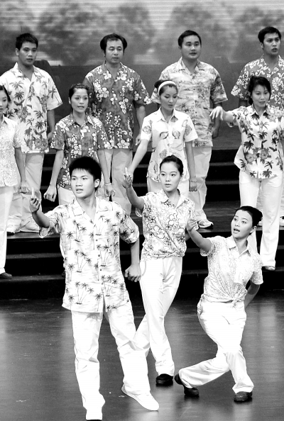 10月12日,演员正在表演琼剧。当日,“风雨同舟”赈灾义演晚会在海口举行。此次义演的主题是“众志成城、树立信心”,演出着力展现海南各族人民在抗洪救灾中的英勇行为和感人事迹。晚会募得捐款2.77亿元。  新华社记者 夏冠男摄