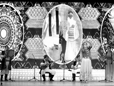 为期两天的第二届全国城区家庭文化艺术节10月13日晚在重庆洪崖洞巴渝剧院开幕。图为来自新疆维吾尔自治区克拉玛依市克拉玛依区的艾尔肯·吐尔逊一家在表演《掀起你的面纱》。 本报记者 张国圣摄