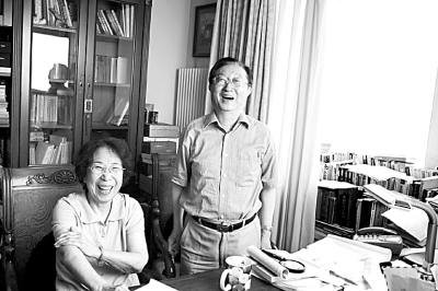 书房里横着一张长桌,两把同样的座椅,两个同样的靠垫。贤伉俪并排坐在一起读书治学,恰如学校里的“同桌”。靠窗的位置是他的,采访时夜色初上,从这扇窗望出去,明月在天,众水咸见。