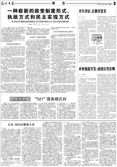 一种崭新的政党制度形式、执政方式和民主实现方式
