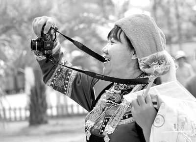 10月19日,一名彝族妇女在上海世博园参观游览,其艳丽的民族服饰成为世博园里的一道亮丽风景。 新华社记者 张国俊摄