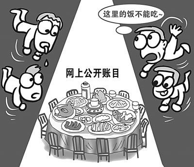 今年3月,四川巴中市巴州区白庙乡开始公布账目,被称为“中国第一个全裸的乡政府”。4月份白庙乡没有一笔招待费支出,5、6月均未超过两笔,晒账本预计能给乡政府节约3万元。10月初,白庙乡网站公布了最新一期“账本”:全乡9月公业务费支出共计19717元,最大一笔开支是中秋月饼慰问费4120元,最小一笔开支是矿泉水费24元。朱慧卿绘