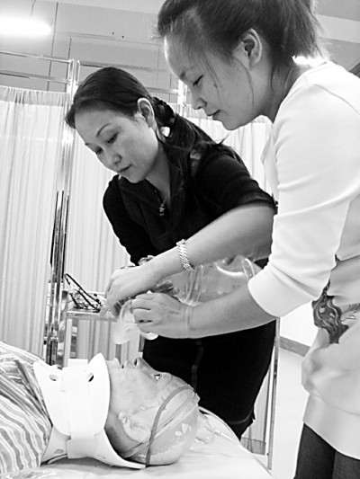 | “中国初级创伤救治”国家级培训中心落户河南人民医院,将采用梯级培训的方式对河南及周边省份的急救与麻醉医学业务骨干进行实用操作技能培养,形成灾害及突发事件初级创伤救治的专业化队伍。图为首批学员在对模拟人进行抢救操作。本报记者 崔志坚摄 |