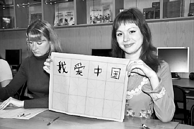 2010年俄罗斯“汉语年”活动中,黑河学院与布拉戈维申斯克国立师范大学联办的俄罗斯远东地区第一所孔子学院,对俄罗斯居民开设书法课已经三年之久,培养了一大批年轻的中国书法爱好者,通过书法练习,加深了对中国的认识和学习汉语的兴趣。图为孔子学院书法老师在辅导俄罗斯学生练习书法、学生展示书法作品。本报记者朱伟光 通讯员姜辉摄