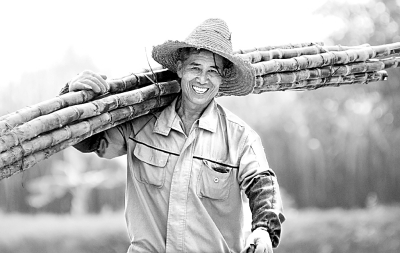 10月24日,广西防城港市上思县叫安乡叫安村一名蔗农在蔗田里扛运砍收的果蔗。连日来,广西各地农民抓紧晴好天气抢收农作物,八桂大地到处是一派繁忙的秋收景象。新华社发(梁富盈摄)