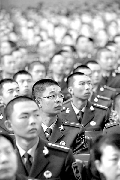 这是部队官兵代表在认真听会