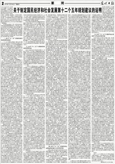 关于制定国民经济和社会发展第十二个五年规划建议的说明