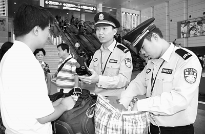 上海世博会已近尾声,世博园连日迎来参观客流高峰。在这最后的时刻,上海铁路警方进一步加强安保措施,严格“三品”检查,保障大部分通过铁路来沪观博游客的乘车安全,确保世博会取得圆满成功。林荣贵摄