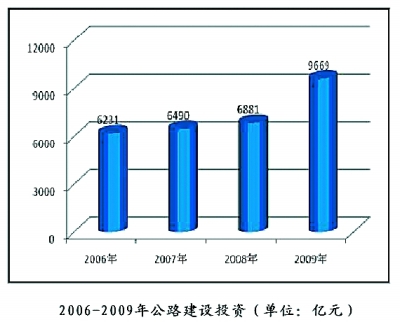 据统计,“十一五”前四年,全国累计完成公路建设投资2.93万亿元,年均增长约16%,约为“十一五”预计总投资的1.2倍,超过“九五”和“十五”的投资总和。