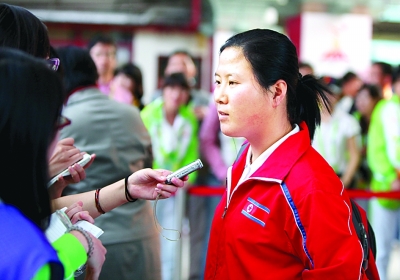 | 11月16日,朝鲜选手赵永淑在比赛结束后,接受媒体的采访。当日,她在射击女子25米运动手枪决赛中以785.9环的成绩夺得金牌。这也是朝鲜代表团在广州亚运会上获得的首枚金牌。 |