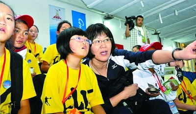 | 11月16日,“铁榔头”郎平以“乔丹公益行”特邀嘉宾的身份现身亚运会排球赛场,与来自全国11个省市的希望小学的优秀教师和学生代表一起观看比赛。 本报记者 王东摄 |