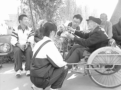 对于新乡学院机电工程学院的大学生党员来说,每周的下午是党小组例会时间,而对于颐年园敬老院的老人们来说,每周的这个时候,则是打开话匣子畅快聊天的时间。十二年来,这群大学生一直在用一种特殊的方式敬老爱老——“爱心助聊”。除了帮老人打扫卫生、剪手指甲、脚指甲、捶背、整理房间,他们最重要的任务就是陪老人聊天,帮助他们消除内心的孤独和寂寞。李怀远 杨鹏嵛摄