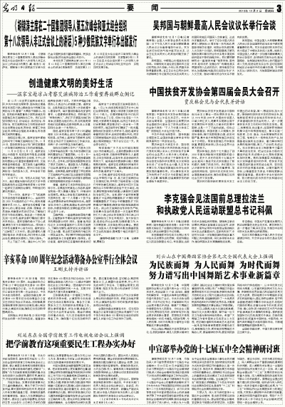 辛亥革命100周年纪念活动筹备办公室举行全体会议