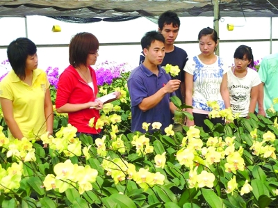 (二)“企业全程介入,校企深度融合”人才培养模式。海职院园艺技术专业在尝试此模式中,构建以职业岗位能力为核心、工作过程为导向的工作过程系统化课程体系。与海口兰花公司进行合作,依托该企业建设园艺教学实践基地。同时,采取内培外修等措施,分批选派教师到该企业挂职锻炼,打造素质精良的优秀教学团队。该团队实行“项目导向、课证融通”的教学模式,面向企业和社会,主动开展交流与合作,既提高教学质量,又提升社会服务能力。