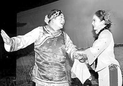 影响“二人台”发展和传播的另一个因素是方言问题。府谷方言仍然保留着古代汉语中的“入声”,其发音过于短且又急促,使得“二人台”的道白无法“字正腔圆”,经过喜剧化夸张式处理后,连府谷人听起来也有点刺耳,这就形成了“二人台”道白的“鸟语”与音乐曲调的“花香”不相协调。唯一出路只能是忍痛割爱,舍弃方言,向普通话过渡。
