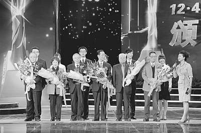 编者按 12月4日“法制宣传日”当晚,由全国普法办、司法部、中央电视台主办,本报参与合办的《法治的力量2010-12·4十年法治人物颁奖盛典》在央视1号演播大厅落下帷幕。根据“百人评审团”的投票结果,10位十年法治人物和4位十年法治人物特别贡献奖得主最终揭晓。这份10人的获奖者名单,不仅是对过去十年中国法治进程的回望与注解,更是对未来中国法治发展和社会进步的期待与承诺。