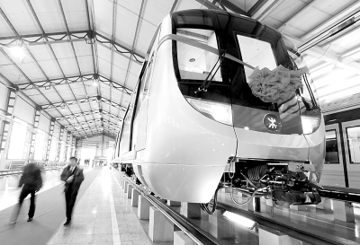 12月6日,港铁项目首列车在下线仪式现场。当日,中国制造的世界最高端地铁列车——香港铁路公司(港铁)西港岛线项目首列车在中国北车长客股份公司下线。该车车体强度、寿命、噪音控制、防火性能等方面均采用了国际最高标准,填补了国内A型高档不锈钢地铁车的空白。新华社记者 王昊飞摄