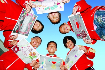 12月7日,江西省龙南县龙南镇第一小学学生正在展示自己设计的感恩图画。该县广泛开展“感恩教育进校园”系列活动,引导学生通过学唱感恩歌、制作感恩卡片等活动,向父母、老师表达感恩之情,弘扬中华民族感恩、报恩的传统美德。