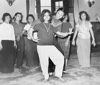 1964年,资华筠教柬埔寨公主跳“孔雀舞”。