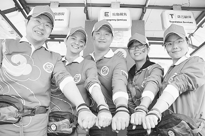 北京奥运会中的城市志愿者。(资料图片)