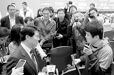 由于在今天的广州亚残运会筹备情况新闻发布会上起身一问,来自“1+1声波网”的记者杨青风成了会后的“明星”。