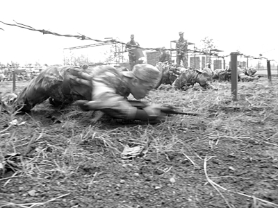 济南军区某部从难从严按纲实训,在训练中摔打和磨练战士,部队的整体作战能力得到全面提高。图为战士们训练匍匐前进。 穆文龙 李亚超摄